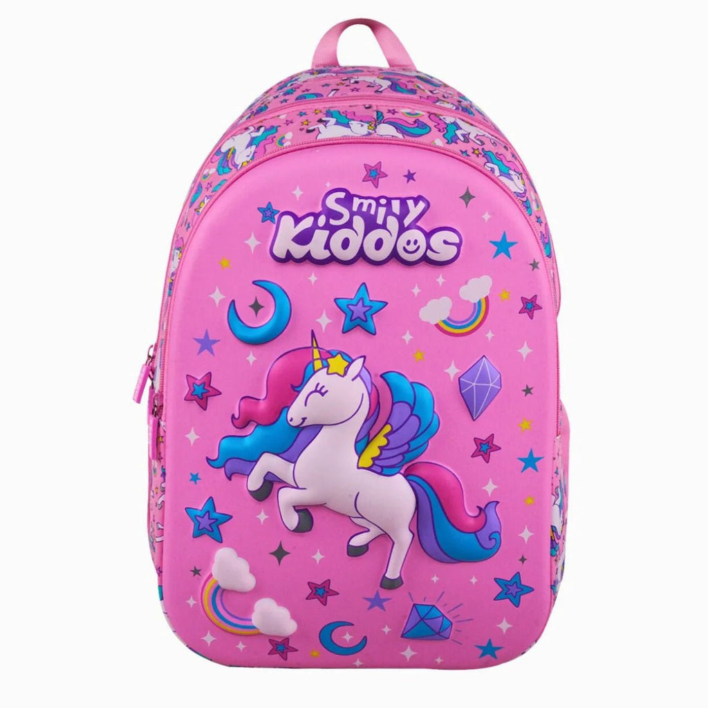 The Smily Kiddos 19L EVA Shell Backpack in a Sky Unicorn Pink Theme is designed for school-going kids who need a durable, spacious, and stylish backpack. With its vibrant pink unicorn print, this bag is perfect for children who love fun and magical designs. Its lightweight yet sturdy construction makes it ideal for daily school use and travel, ensuring both comfort and convenience for kids aged 8 to 12 years.