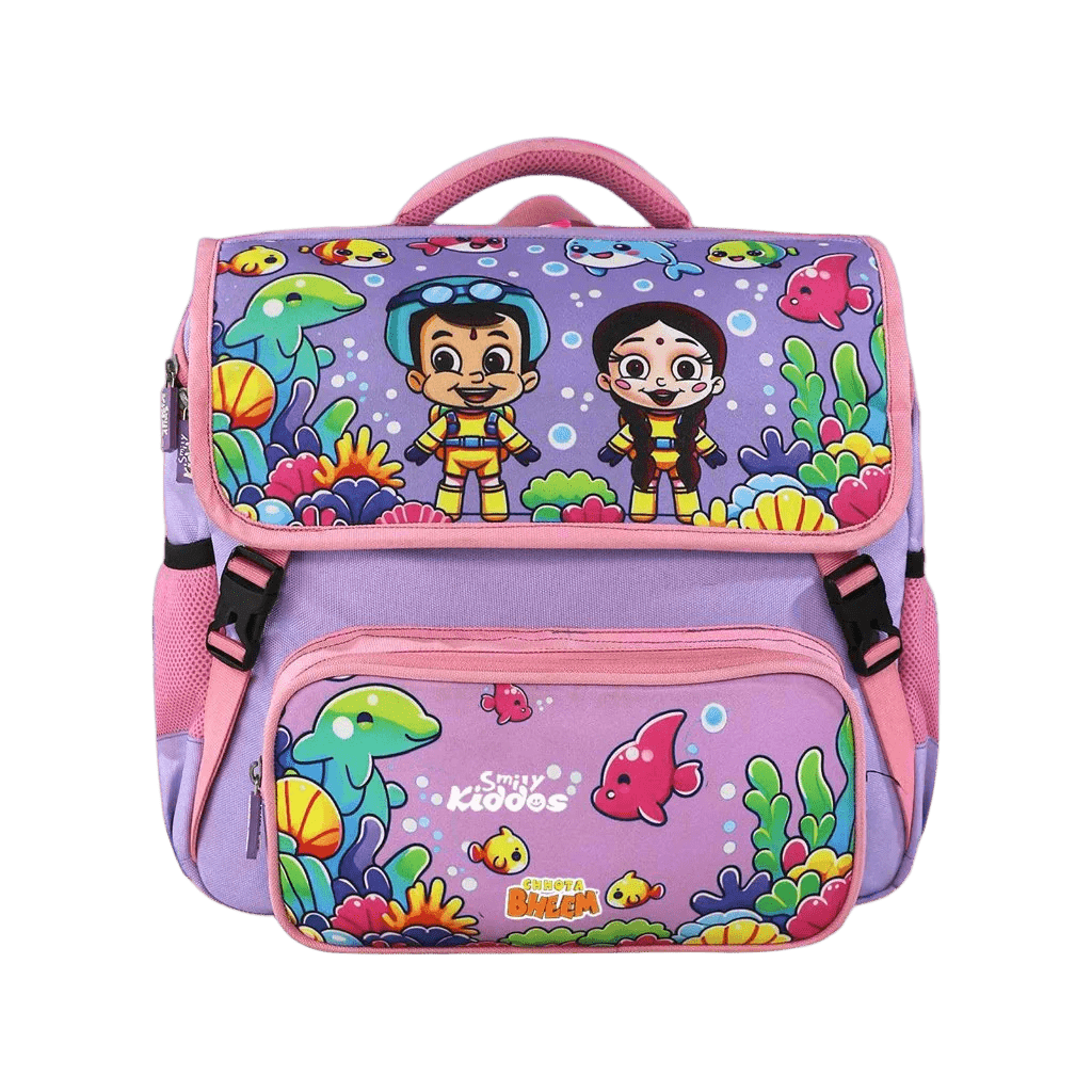 This delightful preschool backpack features a Chhota Bheem theme, inspired by the popular Indian animated character. Here are the details: