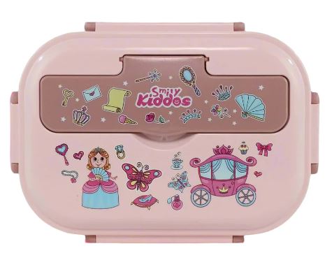SMILY KIDDOS PRINCESS THEME STAINLESS STEEL LUNCH BOX PINK LARGE