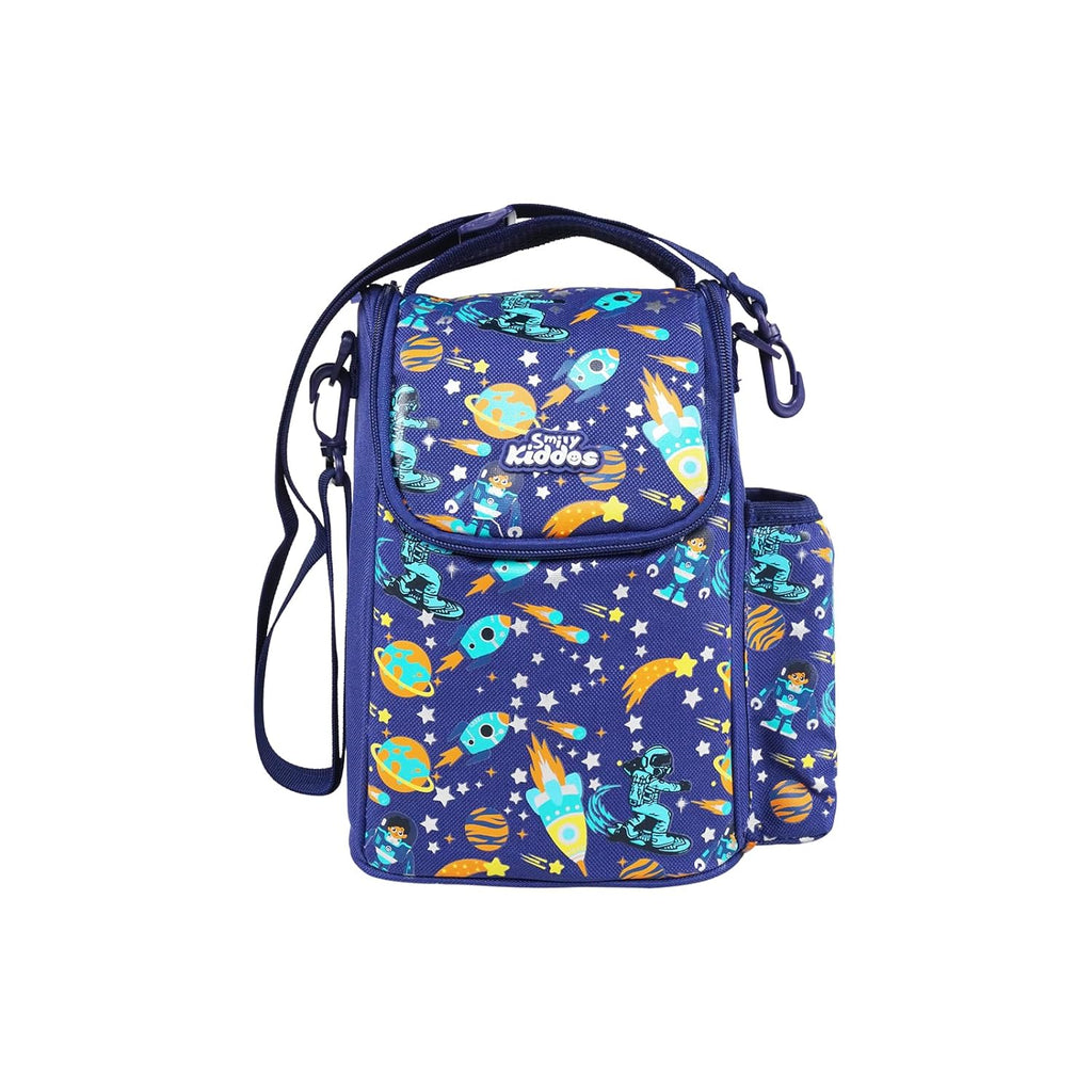 Make lunchtime an adventure with the Smily Kiddos Strap Lunch Bag V3 in an exciting Space Astronaut theme! Designed for kids aged 4 to 10, this vibrant and durable lunch bag features smooth double zippers, a comfortable carry handle, and an adjustable strap for easy portability. The spacious two-compartment design keeps food organized and safe, while the food-grade, BPA-free lining ensures hygiene. A convenient side pouch holds a water bottle, making it the perfect companion for school or outings.
