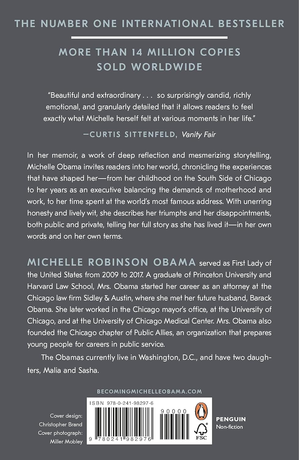 In her memoir, a work of deep reflection and mesmerizing storytelling, Michelle Obama invites readers into her world, chronicling the experiences that have shaped her -- from her childhood on the South Side of Chicago to her years as an executive balancing the demands of motherhood and work, to her time spent at the world's most famous address. With unerring honesty and lively wit, she describes her triumphs and her disappointments, both public and private, telling her full story as she has lived it -- in her own words and on her own terms.
