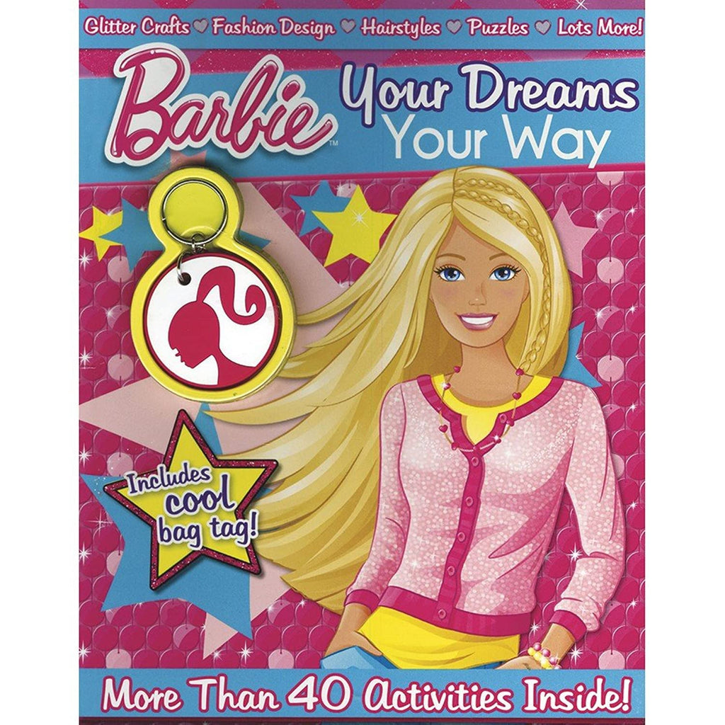 With over 40 amazing activities make your Dreams come true with Barbie Your Dreams, Your Way. Check out the glam ideas for using your cool Barbie bag tag. Make sparkling accessories, learn how to create fabulous new hairstyles, plan a sleepover, design a new dress for barbie, and lots more.