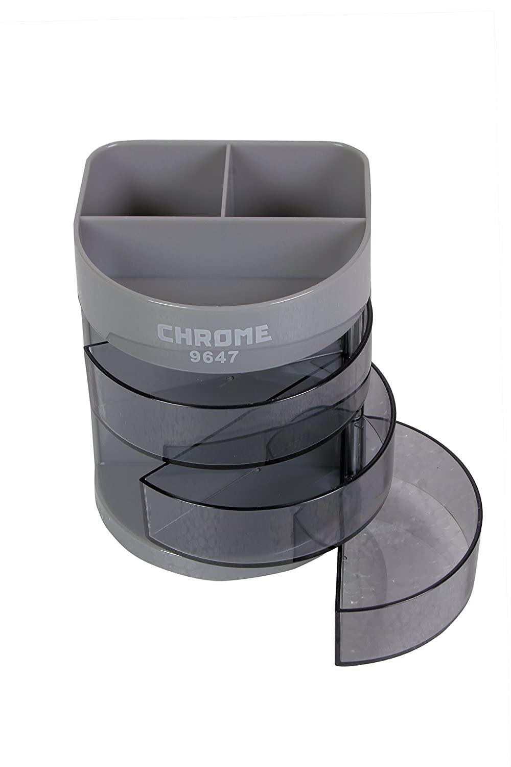 CHROME PEN HOLDER WITH 3 DRAWERS