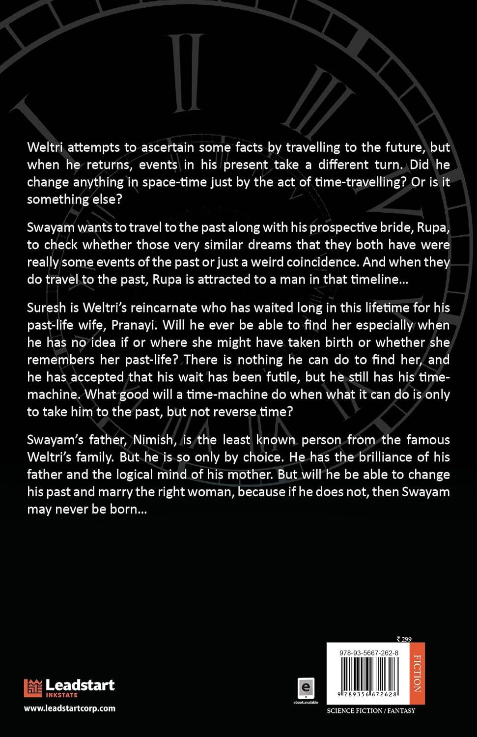 Suresh is Weltri’s reincarnate who has waited long in this lifetime for his past-life wife, Pranayi. Will he ever be able to find her especially when he has no idea if or where she might have taken birth or whether she remembers her past-life? There is nothing he can do to find her, and he has accepted that his wait has been futile, but he still has his time-machine. What good will a time-machine do when what it can do is only to take him to the past, but not reverse time?