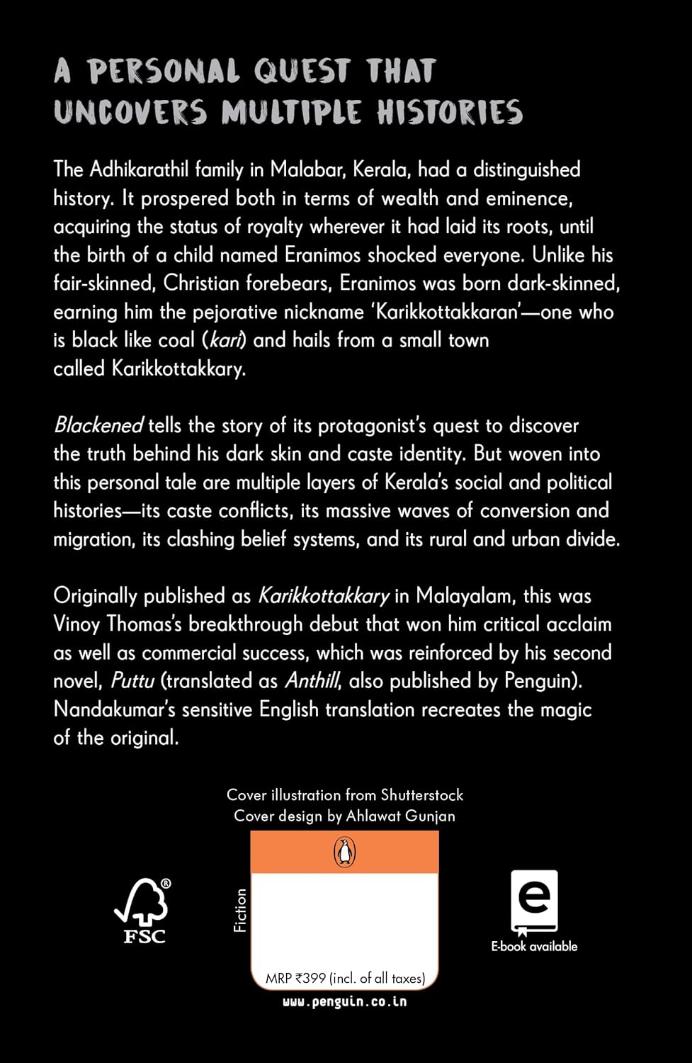 Originally published as Karikkottakkary in Malayalam, Blackened is an impactful bildungsroman that covers the arc of a conflicted life, and shows us how family histories are tied into the larger historical currents that form communities and shape destinies.