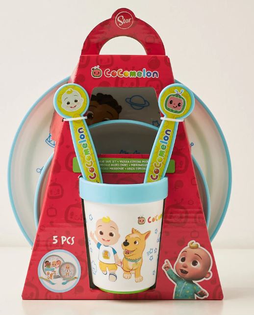 STOR 5 PCS NON SLIP BICOLOR PREMIUM SET (PLATE BOWL TUMBLER 260 ML & CUTLERY) COCOMELON