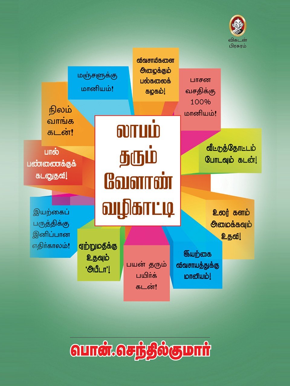 In today’s world where the agriculture is decreasing rapidly, the government is introducting, many plans to help the farmers. It is the duty of every citizen to spread this information to all, especially farmers to pay our indebtedness towards them. Though there are many subsidies provided by the government like crop loan, the harvest credit, loan for well digging, raising livestock loan etc…the farmers are not aware on how to get the loan or whom to contact for doing so. “Laabam tharum velanmai” is one of the article published regularly in Pasumai Vikatan’s magazine which guides the farmers on all the above concerns. This book is given by Pon.Senthilkumar contains all the required information on how to avail the loan and whom to contact for doing so. This book will be definitely helpful for the farmers who feed us, to reduce their worries and improve in the field of agriculture.