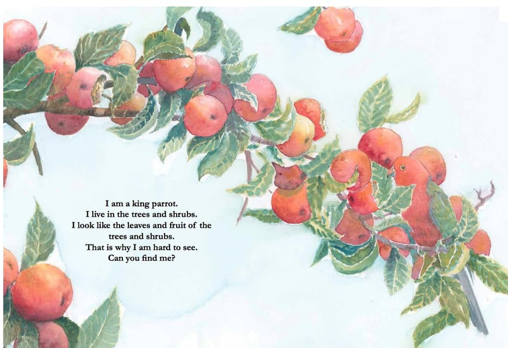 Search for an echidna, a powerful owl, a frog and many more animals hidden on every page. Patrick Shirvington’s striking illustrations hide each one of the animals just enough for the guessing to begin.