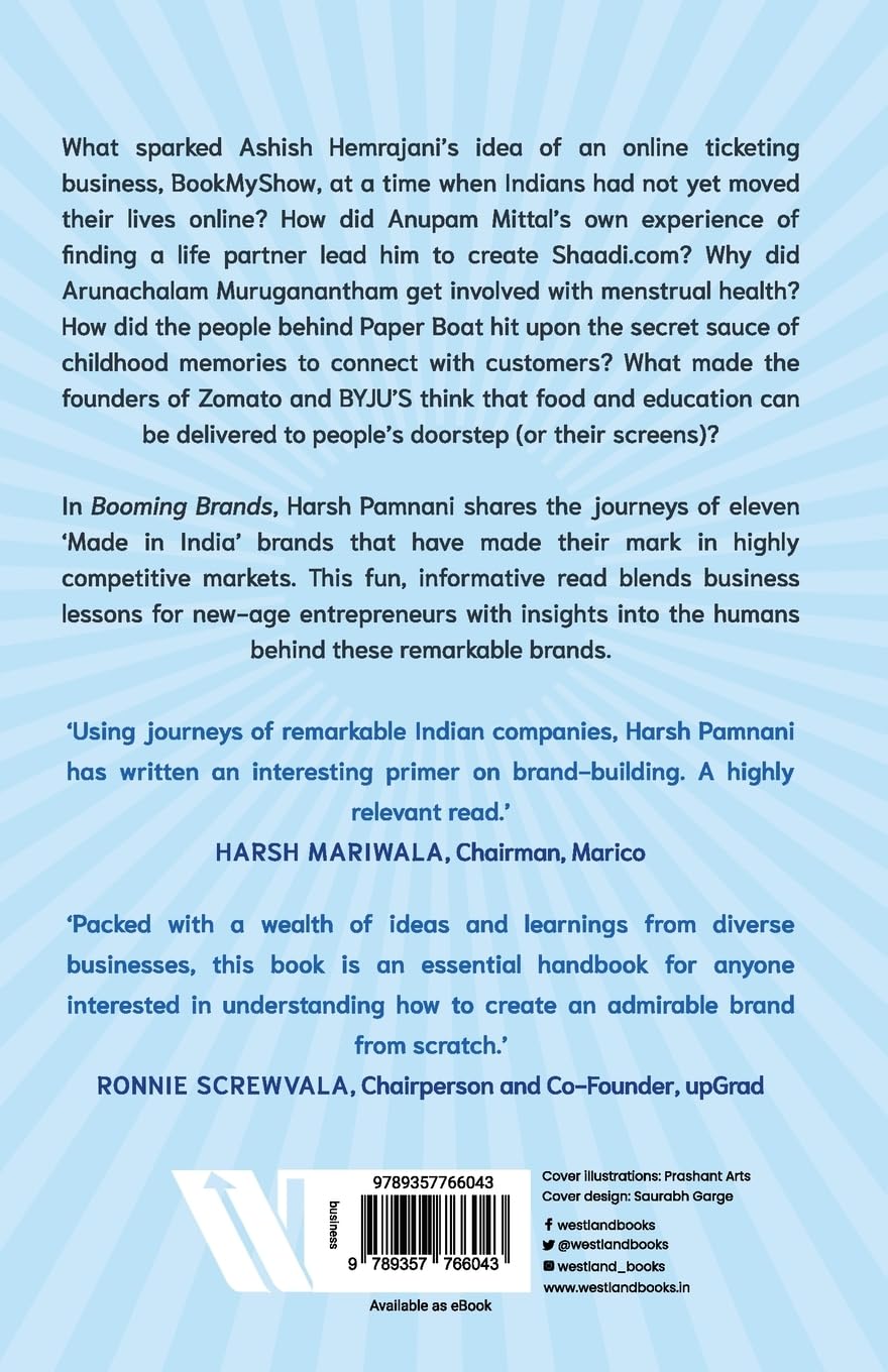 In Booming Brands, Harsh Pamnani shares the journeys of eleven ‘Made in India’ brands that have made their mark in highly competitive markets. This fun, informative read blends business lessons for new-age entrepreneurs with insights into the humans behind these remarkable brands.