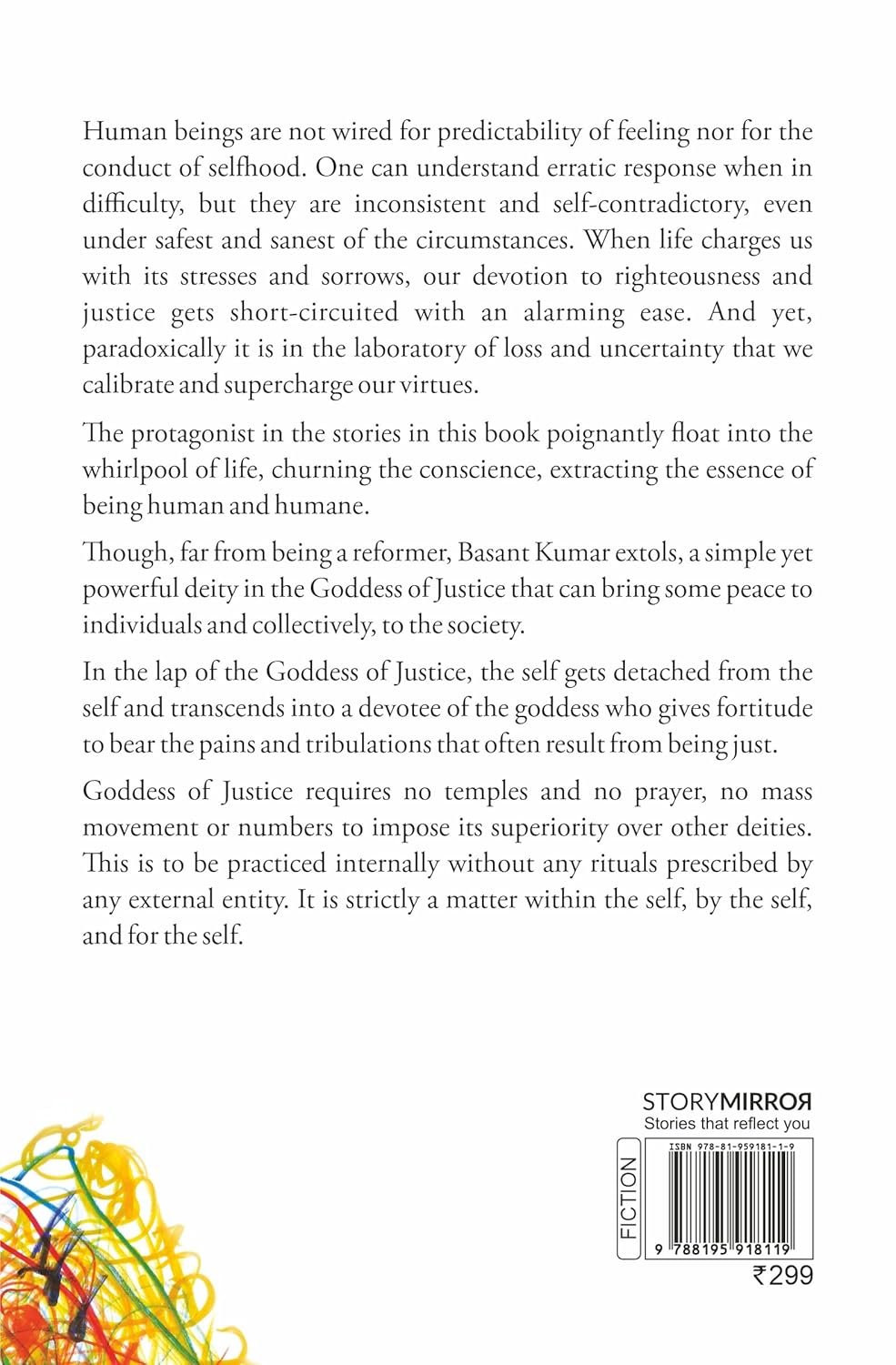 The protagonist in the stories poignantly float into the whirlpool of life, churning the conscience, extracting the essence of being human and humane.Though, far from being a reformer, Basant Kumar extols, a simple yet powerful deity in the Goddess of Justice that can bring some peace to individuals and collectively, to the society.